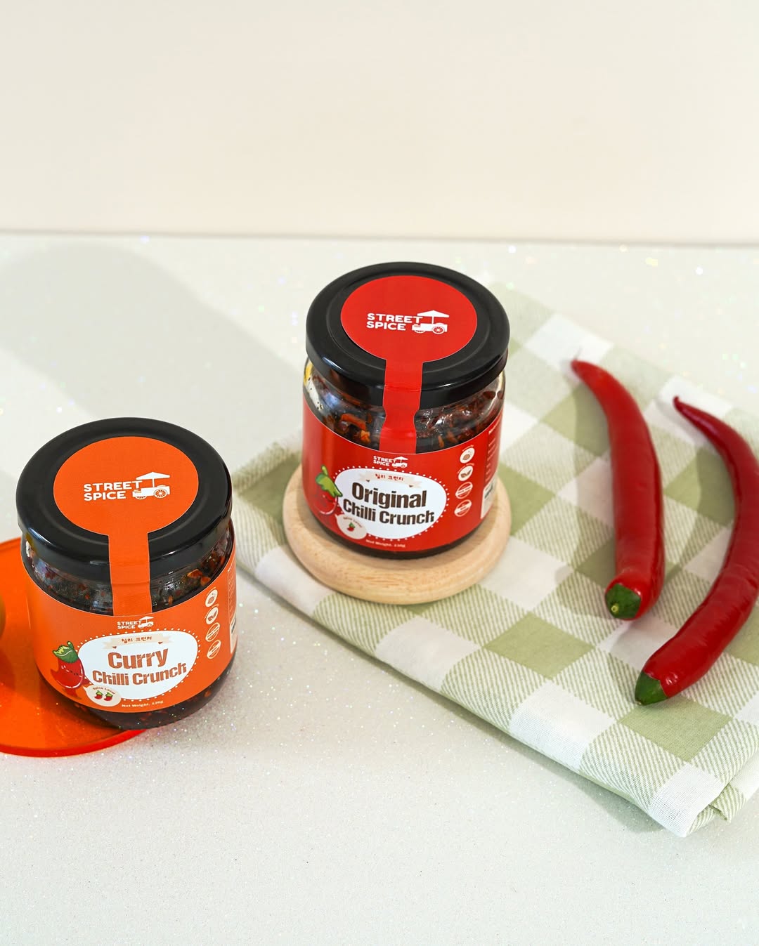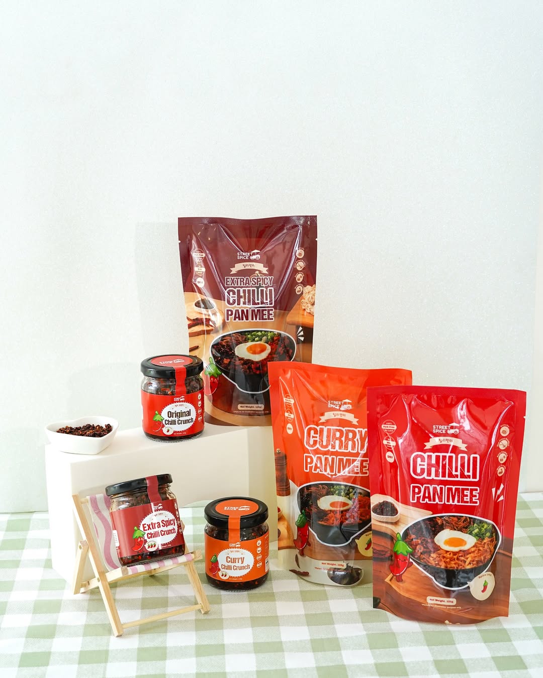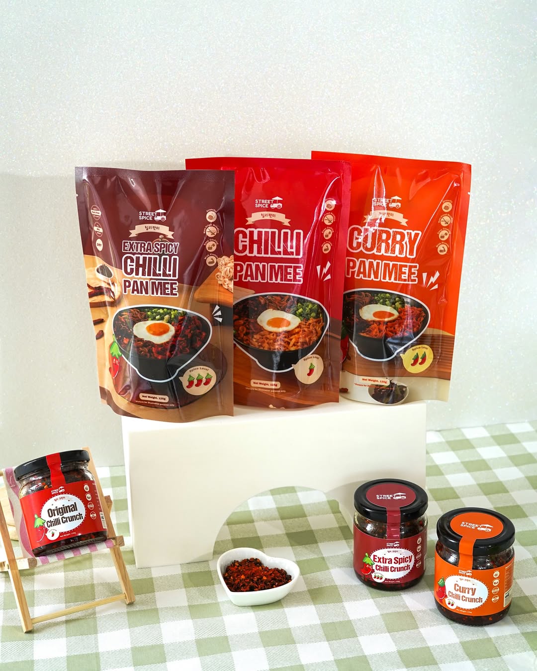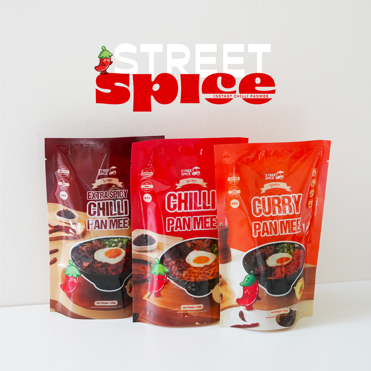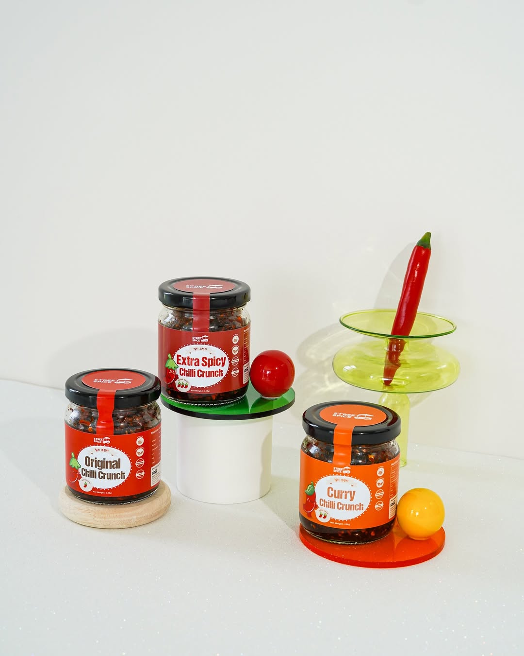 For Street Spice, our goal was clear: create packaging that exudes professionalism while embracing the vibrant energy of Malaysian food culture but having the hint of minimalism. 🌟 Our design team delivered with an approach where we highlight spiciness levels, crafting a striking cute chili mascot, and incorporating modern yet approachable aesthetics for the jars and packaging designs.