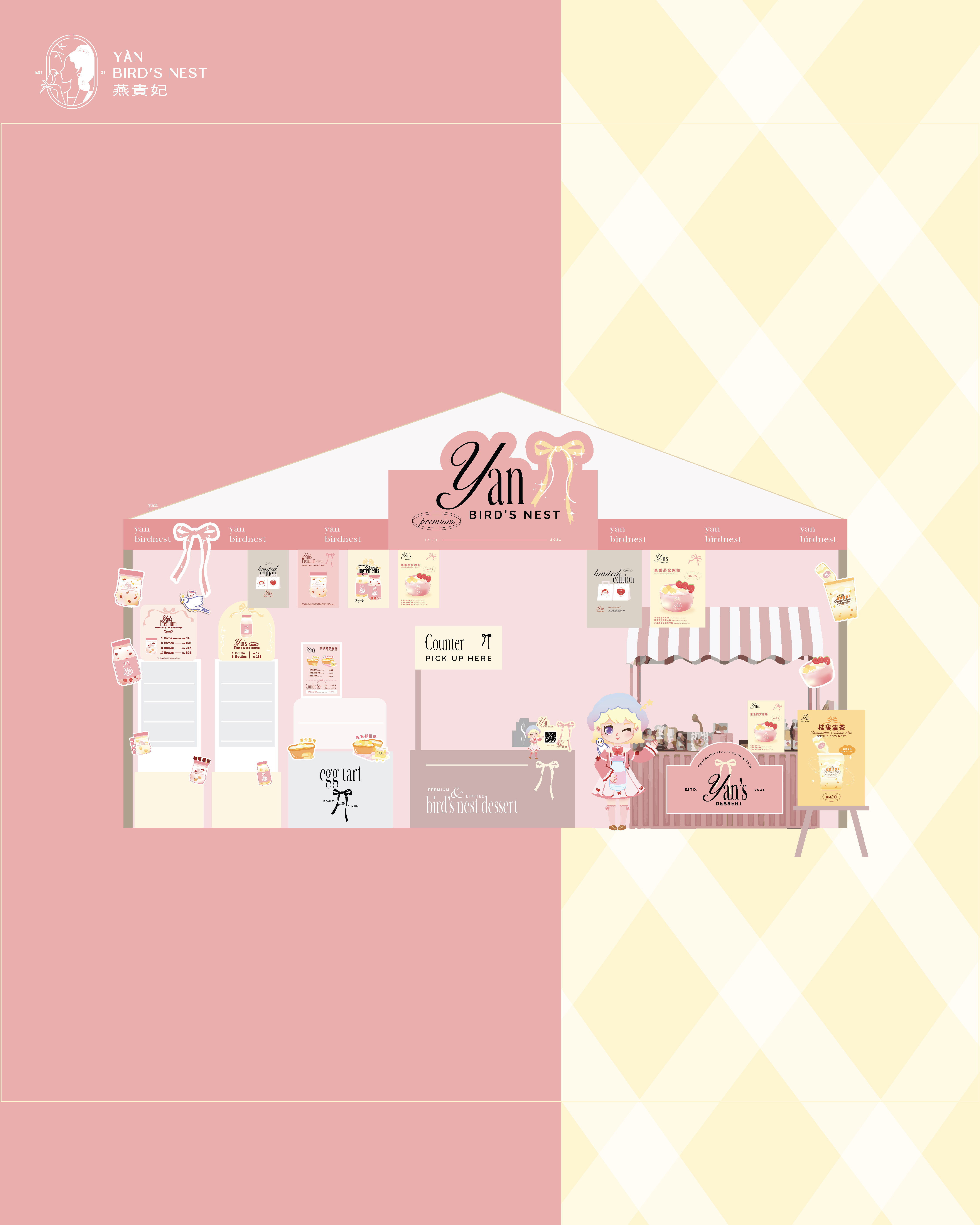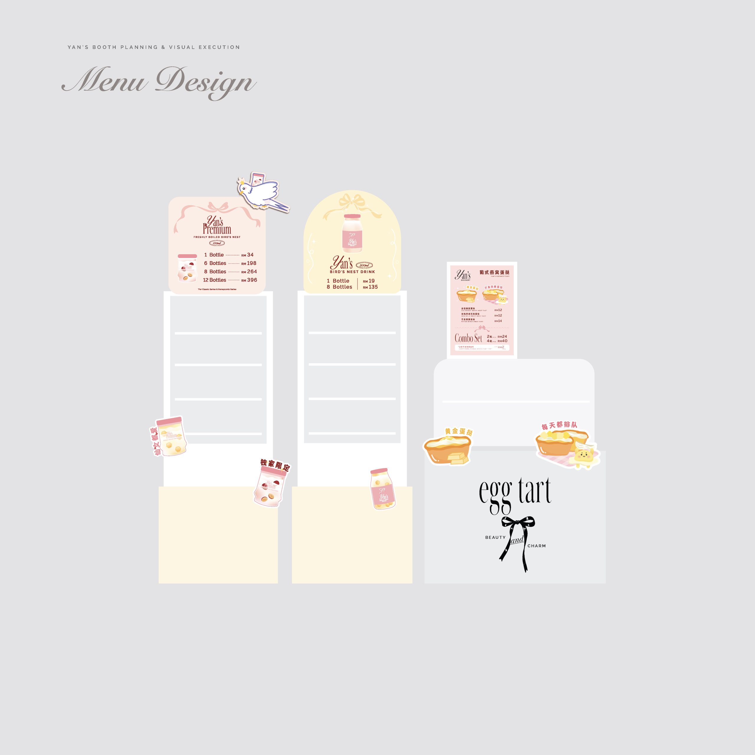 Our team focused on creating cohesive signboards and buntings that highlight Yanguifei Bird’s nest unique offerings, especially their fresh bird’s nest desserts.